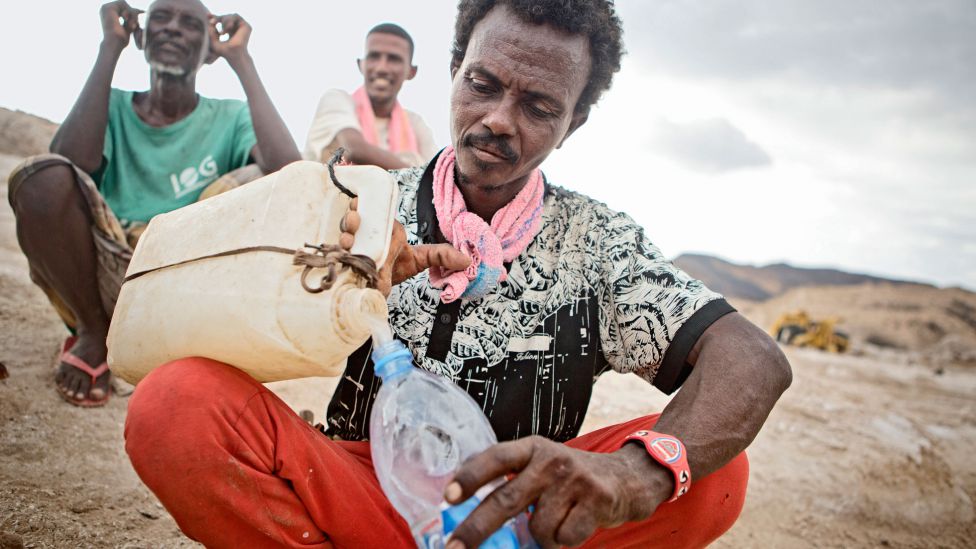 Tilpasset væskemangel. Når sommeren kommer, drikker Afar-folket ved Assalsjøen 15 liter vann om dagen den første tiden. De fyller tre gule femlitersdunker med vann i en kilde ved sjøen. Mot slutten av sommeren har vannet begynt å svinne, og den siste tiden rekker det bare til knapt en dunk, noen ganger bare to liter vann pr. person. Toomas Timpka tror de takler det lave væskeinntaket fordi kroppen deres har tilpasset seg.