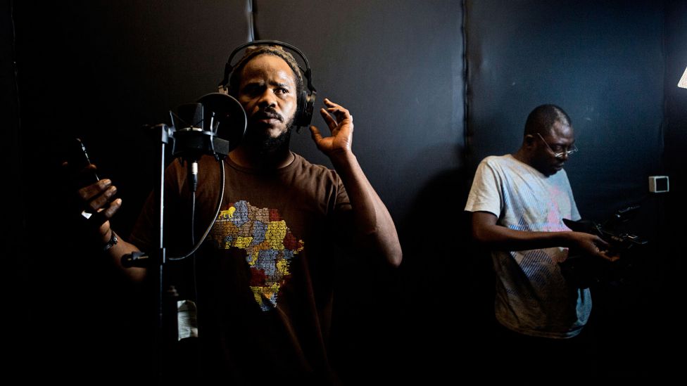 Bak en liten dør er det et overraskende svalt og godt opplyst studio med vegger med skinnende svart lydisolering. Ved miksepulten står Benaflos tre statuetter fra Mali hiphop-awards 2016. Rett overfor miksebordet, på den andre siden av en vindusrute, spilles låten inn. Rapper for rapper.