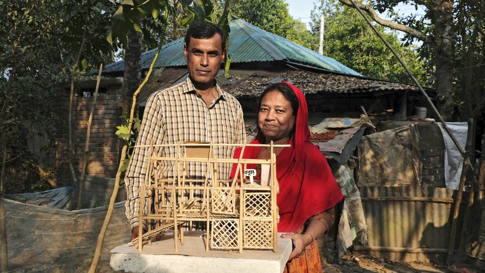 Mannen hennes, læreren Alamgir Kabir, viser andre ting paret har bygget. En stor fisketank for fisk fanget i elven ved siden av, et utekjøkken med utsikt i alle retninger. Et enkelt skolebygg med åpne vegger av bambus, hvor Alamgir underviser barn som ikke har råd til å gå på en god skole. Så går han tilbake til grunnmuren av leire og peker på en liten åpning. Det er en hemmelig dør, så liten at bare barn kan bruke den.