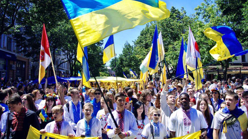 Russere identifiserer seg med Ukraina. Virkeligheten er mer komplisert enn som så. For det første er det i Ukraina ikke bare etniske russere, men også svært mange ukrainere, som har russisk som førstespråk. Mens rundt 20 prosent av Ukrainas befolkning er etniske russere, bruker nærmere halvparten russisk i dagligtale.