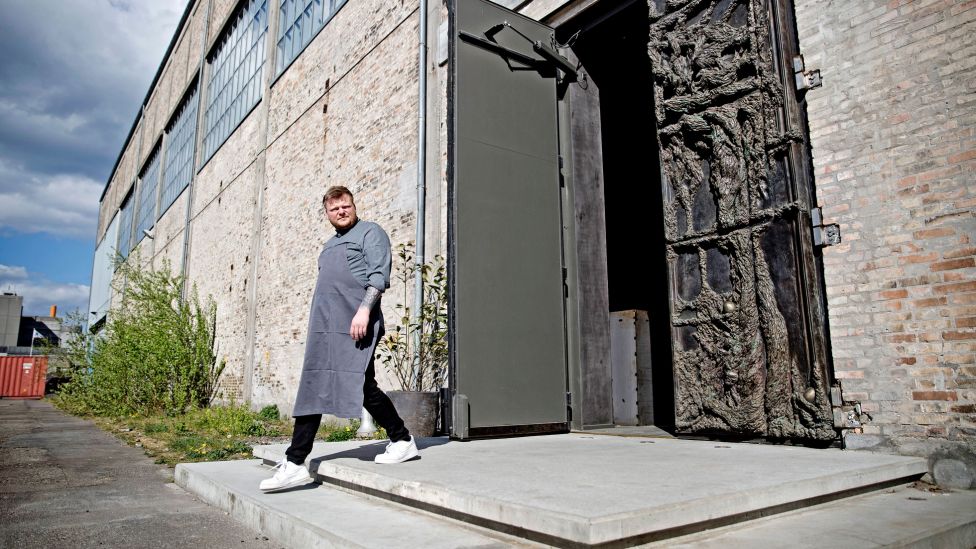 • Gourmetkokk Foran den fire tonn tunge bronseporten ved inngangen til Alchemist står Michelin-kokken bak et prosjekt hvor det lages mat til Københavns hjemløse fra et koronastengt gourmetkjøkken, Rasmus Munk. Alle foto: MALIN PALM