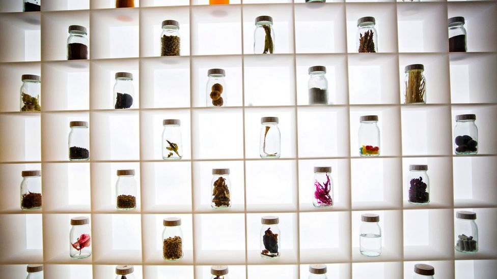• Smaksvegg Restaurantens såkalte «Tastewall» er en samling frysetørkede matvarer, en del eksotiske som restaurantens kokker har tatt med fra sine hjemland, men også et helt oppsett av danske eplesorter. Bak Tastewall ligger testkjøkkenet der en mikrobiolog sammen med et lag av kokker forsker frem nye måter å anvende råvarer på.