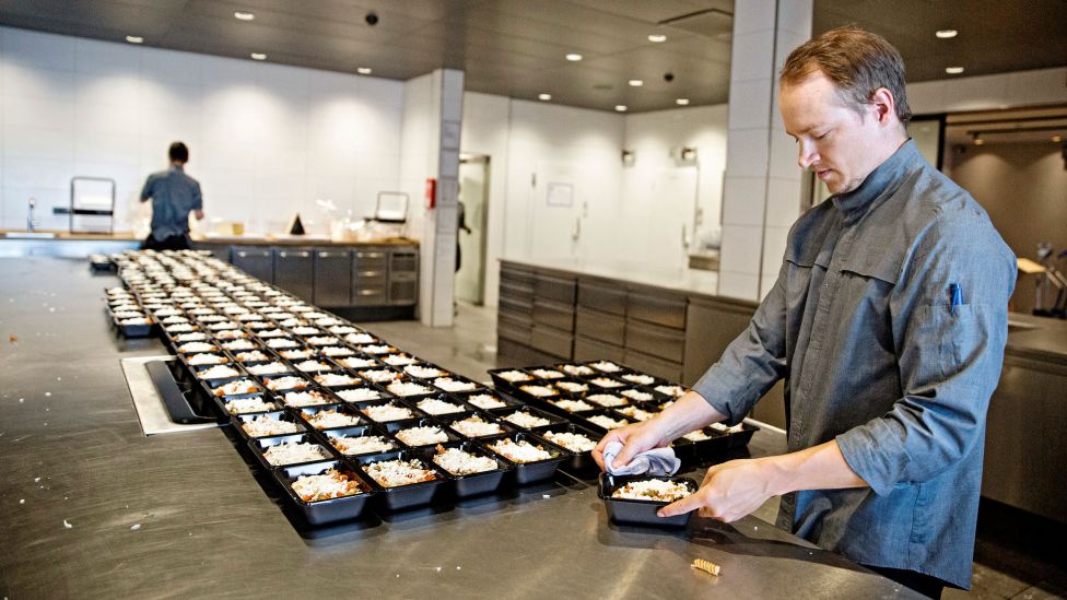 Fem av restaurantens permitterte kokker stilte opp frivillig. I begynnelsen var det noen utfordringer med å venne kokker som var vant til detaljert molekylær matlaging, til å drive storkjøkken. Rasmus Munk ler når han tenker på de lange blikkene han fikk da han første gangen ba dem koke 70 kilo pasta. Og spørsmålet er: Hvordan merker man på en vanlig pasta bolognese at den er planlagt og tilberedt av Michelin-kokker?