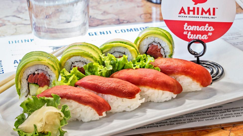Plommetomater og konjacrot. Det var i 2013 at Ocean Hugger Foods begynte å eksperimentere med plommetomater i jakten på en troverdig tunfisk-imitasjon. Valget var blant annet basert på at tomater inneholder aminosyrer som også finnes i kjøtt.