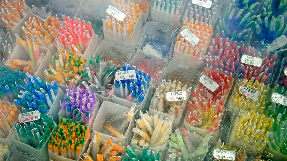 Smale reagensrør i forskjellige farger: gobleter. Hvert rør inneholder et antall sædstrå. Hvert strå er én dose, merket med nummeret på én bestemt okse. Fargene gir assosiasjoner til en godtebutikk. Og det er jo det dette er. En evolusjonær godtebutikk.