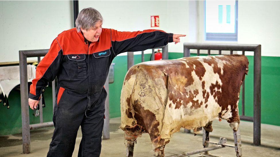 – Det er forskjellige egenskaper vi ser etter: Det er for eksempel fasong på jur, utmelkingshastighet, lekkasje. Det er bein og klover og bekkener: Hvor gode dyra er til å stå, og hvor gode de er til å føde. Og så er det andelen kjøtt i forhold til bein og fett.