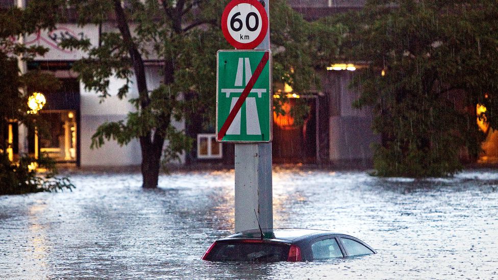 • København 2. juli 2011 Regnet som falt over København 2. juli 2011 forårsaket enorme oversvømmelser og trafikkproblemer. Foto: POLFOTO/NTB SCANPIX