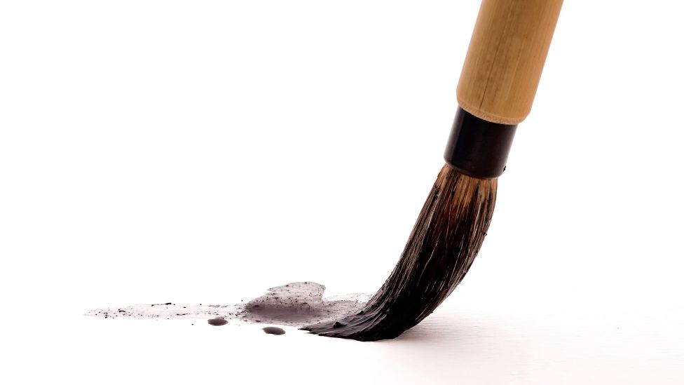 > Østasiatisk kalligrafi har tradisjonelt vært skrevet på rispapir, med tuppen av en skrivepensel i stedet for med et bredkantet skriveredskap.