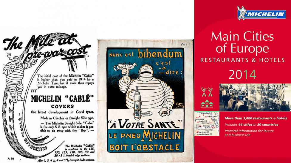 Den kjente illustratøren Marius Rossillon (aka O'Galop) designet den ikoniske logoen: Den lett gjenkjennelige Michelin-mannen med kropp av hvite dekk.