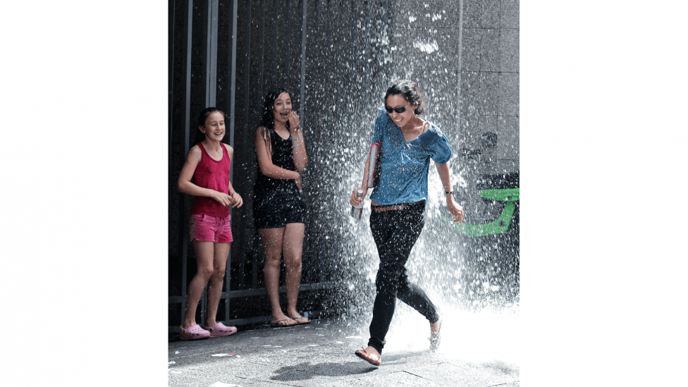 • Siste arbeidsdag En kvinne i den uruguayanske hovedstadens finansdistrikt dynkes i vann, 31. desember 2013, som ledd i en markering av at det er årets siste arbeidsdag. Foto: ANDRES STAPFF, REUTERS/NTB SCANPIX