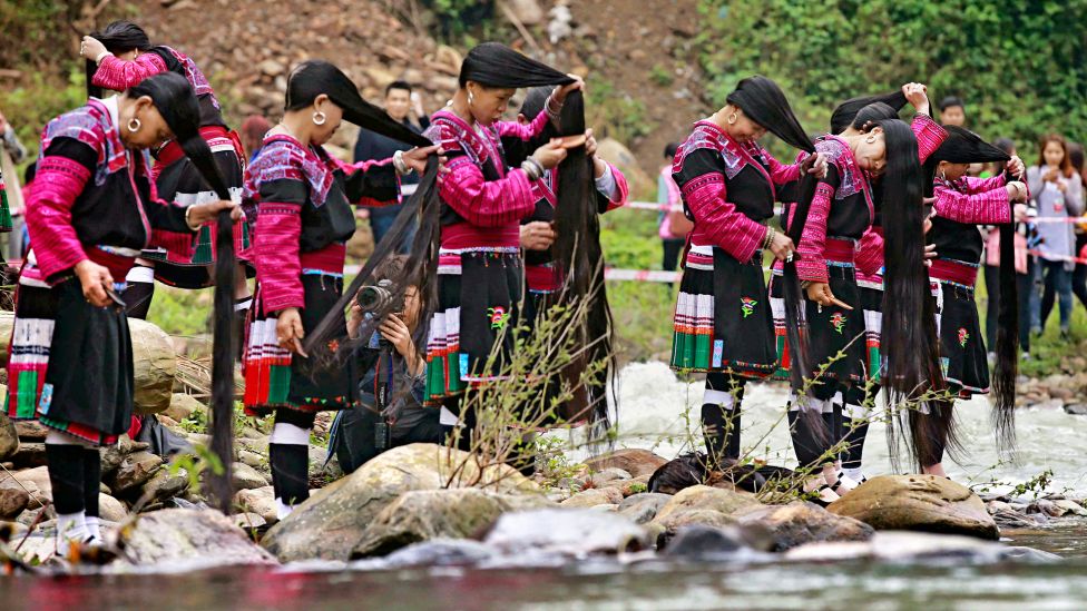 Gamle, men aldri grå. Det er nærliggende å tro at disse kvinnene må ha et skyhøyt forbruk av sjampo og andre hårprodukter. Men nei. Gjennom generasjoner lærer de hvordan de best mulig tar vare på håret, helt uten sjampo, balsam eller hårkurer. Hemmeligheten bak det lange, sunne og glansfulle håret deres er kokt risvann, urter – og kaldt vann fra elven. Hver tredje dag vasker de håret sitt med denne blandingen. Opptil flere ganger daglig grer de det med en grovtannet tre-kam. Alle kvinnene her har kullsvart hår, og fargen holder seg utrolig nok til de blir gamle. Først etter fylte 80 år er det vanlig for en yaokvinne å finne sitt første hvite hårstrå.